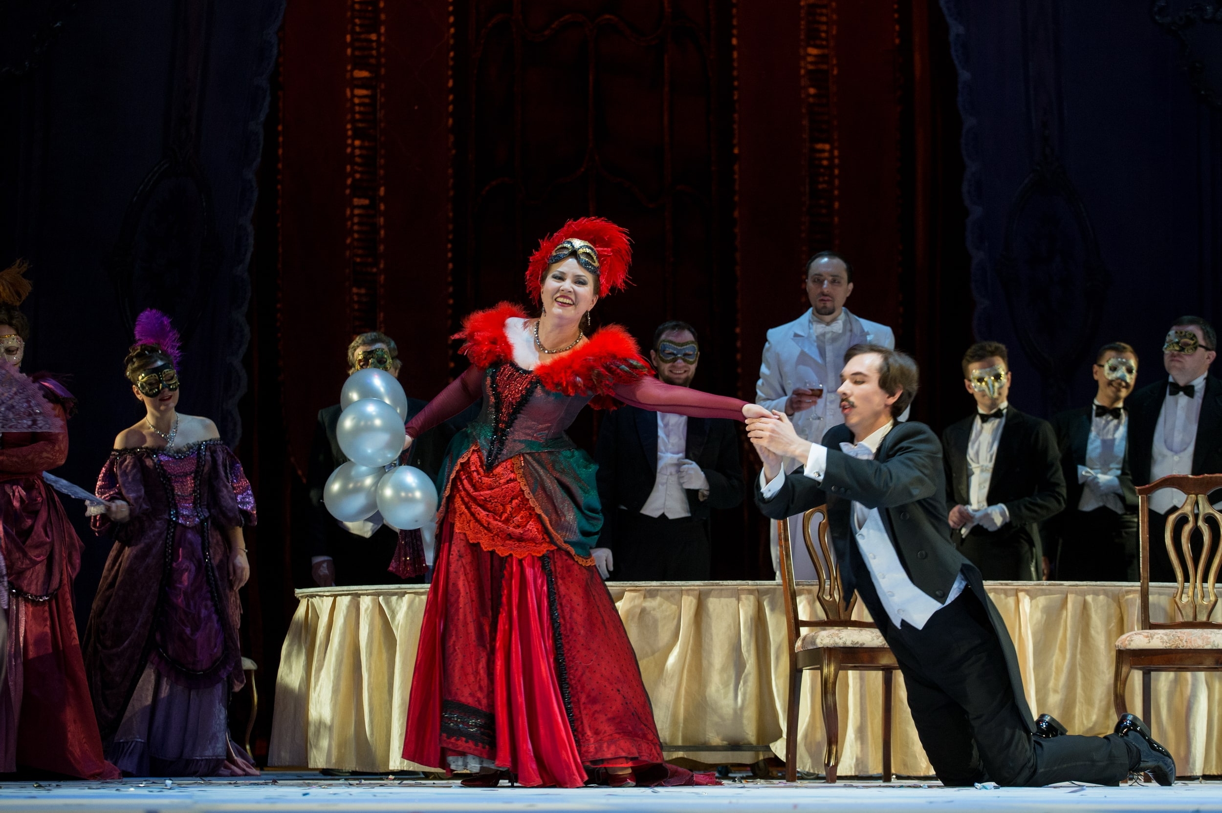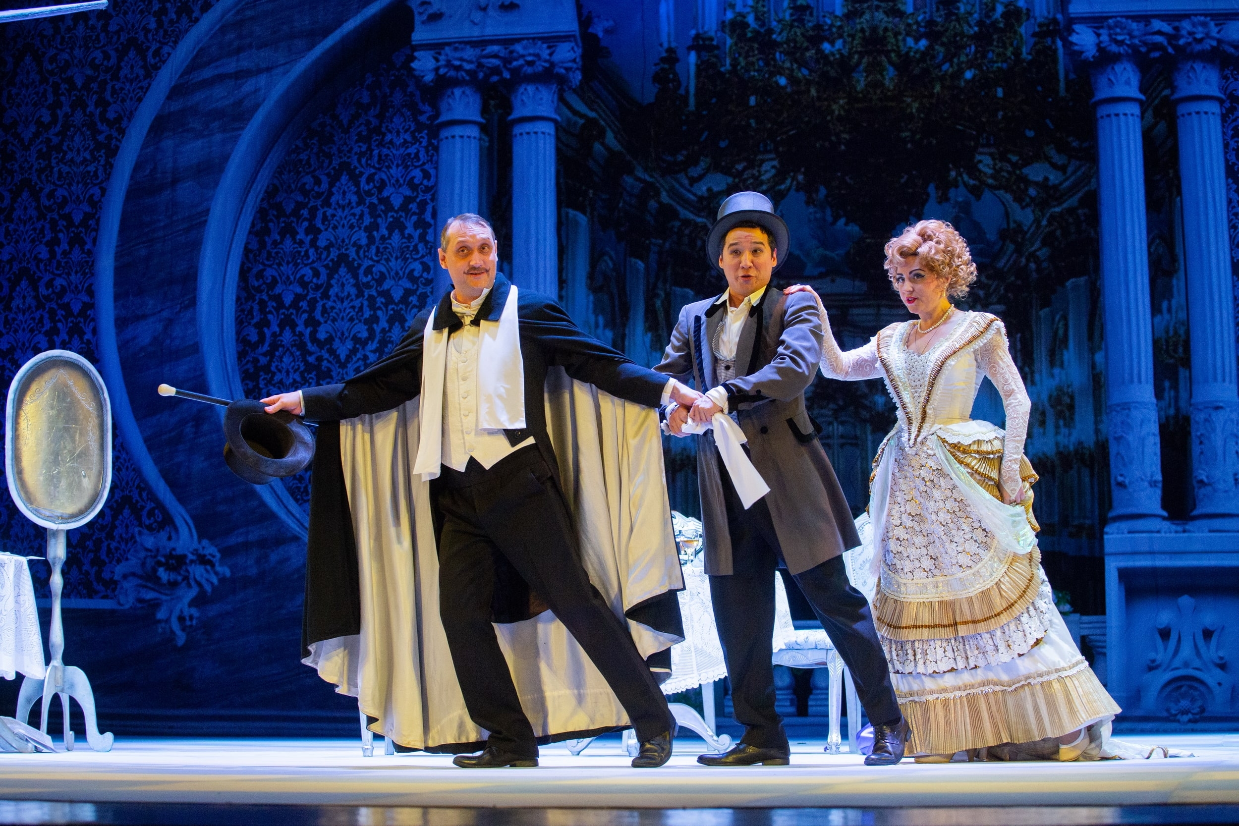 «Летучая мышь» — это, конечно, самая праздничная и фееричная оперетта. Здесь интрига закручена вокруг маскарада, герои флиртуют направо и налево, а музыка искрится и сверкает, щедро даря всем настроение легкости и веселья! Здесь, как верно заметил критик, «непрерывно поют, танцуют, болтают всякую смешную чушь, создавая зрелищную гармонию, которая навсегда оставляет в душе зрителя брызги шампанского». Гениальная музыка Иоганна Штрауса и блестящая, полная изящества и остроумия пьеса Николая Эрдмана — это три действия слегка абсурдной путаницы, шуток и «коварных» интриг под искрометную музыку короля вальсов.